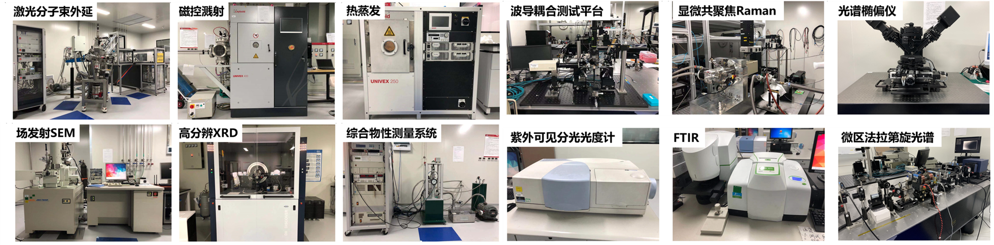 课题组依托国家电磁辐射控制材料工程技术研究中心(http://www.erc.uestc.edu.cn/)和电子薄膜与集成器件全国重点实验室两个国家级平台开展研究工作。目前实验室独立具备的科研设施包括激光分子束外延系统,共溅射系统,电子束曝光系统,微纳光波导测试平台,超表面表征系统,磁光克尔/法拉第旋光测试平台,磁光椭偏仪,半导体分析仪等。