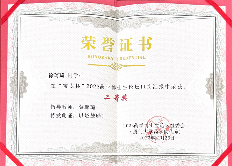 • 曾获荣誉:国家高层次青年人才,四川省青年五四奖章,四川省杰出青年基金,四川省医学科技奖一等奖,四川省学术技术带头人后备人,四川省高层次海外留学人才。中国抗癌协会纳米肿瘤学分会委员、中国医药生物技术协会纳米技术分会委员、四川省药学会纳米药物专委会副主任委员,Signal Transduct Target Ther和Asian J Pharm Sci等SCI杂志(青年)编委。