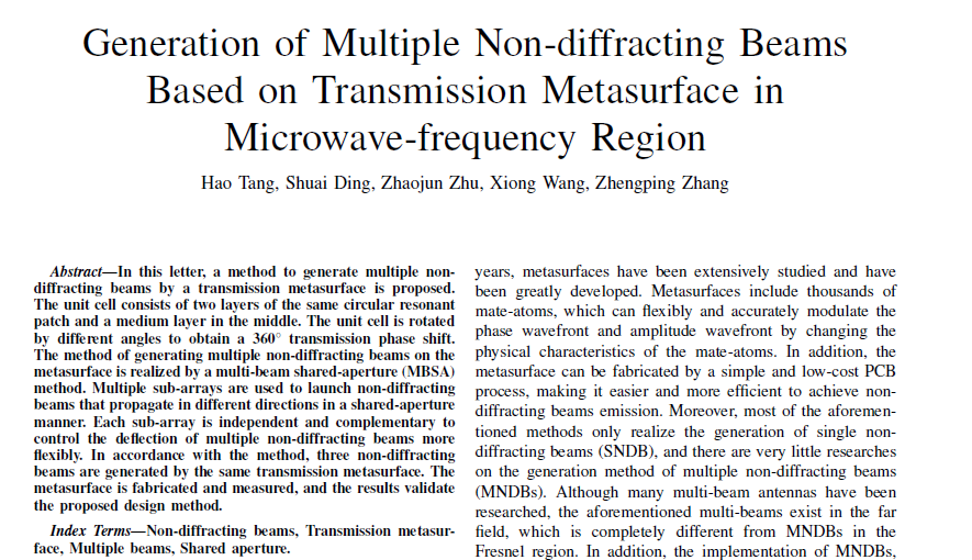 一种用于Bessel波束产生的小型化宽带折叠天线设计。 IEEE Transactions on Antennas and Propagation ( Early Access ),DOI: 10.1109/TAP.2024.3425055。