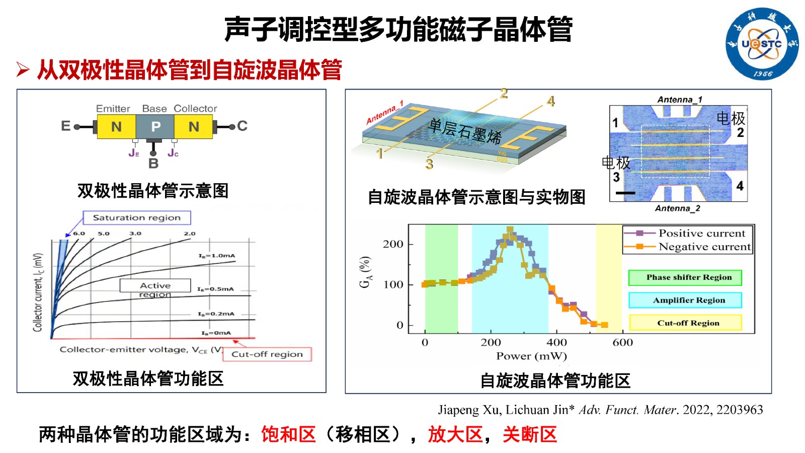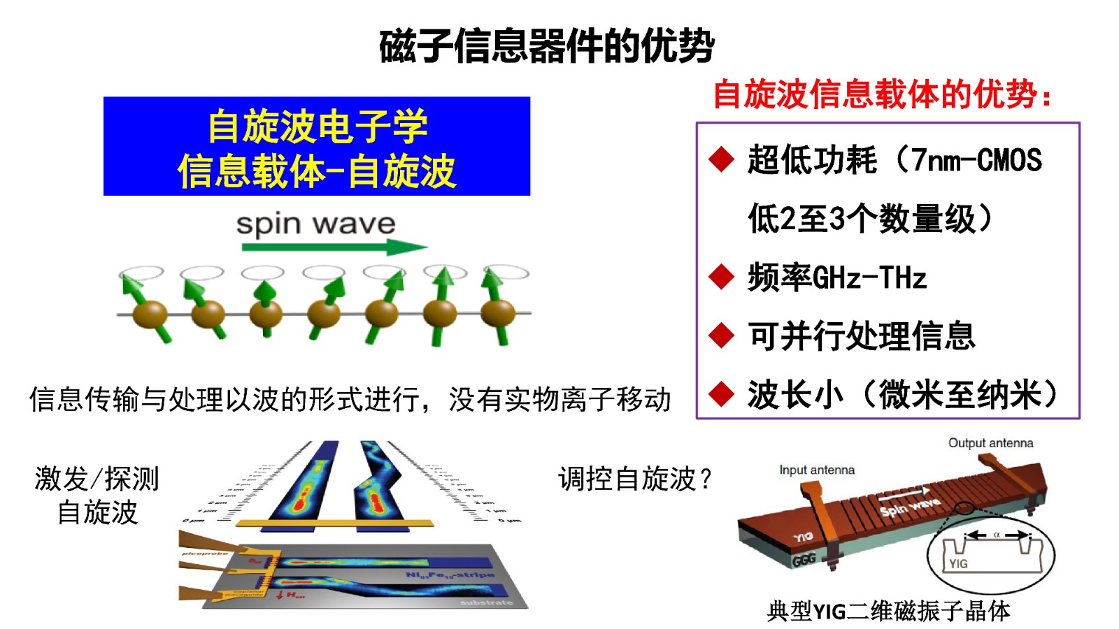 磁子作为一种玻色子,为自旋波的量子化基元,传输过程中具有无焦耳热、低功耗、极宽频等特点。磁子晶体管以磁子流取代电荷流作为信息载体,是后摩尔时代一类关键玻色子信息器件,有望应用于低功耗信息传输、存储与逻辑运算等领域。我们探索并发展了基于YIG单晶薄膜的磁子集成器件,提出了自旋波传输的声子调控新方法,实现了兼具信息放大、关断和移相功能的自旋波晶体管器件(Adv. Funct. Mater. 2022, 2203963);针对太赫兹磁子信息器件前沿问题,提出了反铁磁晶格缺陷调控的太赫兹自旋电子器件,实现了0.5-3THz的超快自旋信号源(Small Structures 2023, 2300076);发展了YIG薄膜表面金属化方法,提高低波矢自旋波的传输效率,获得创纪录的自旋波群速度(Adv. Electron. Mater. 2022, 202201061)等。研究成果在权威期刊Adv. Funct. Mater.、Small Struct.、Adv. Electron. Mater.、Phys. Rev. B等上发表。