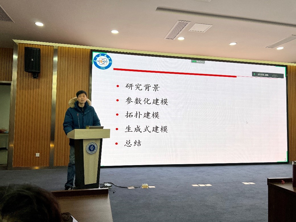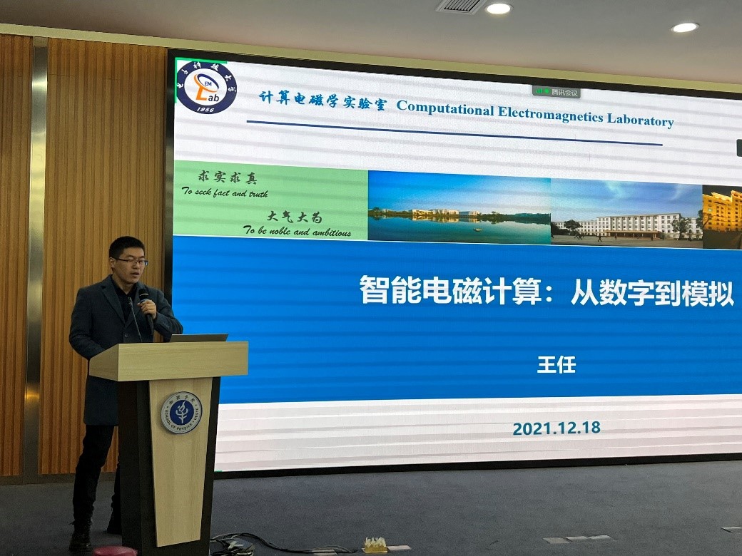在随后的教师学术报告环节,五位老师作了精彩的学术报告。邵维教授在题为“电磁器件/天线建模中的人工神经网络技术”的报告中介绍了课题组在参数化建模、拓扑建模、生成式建模方面的工作。赵德双教授以“开展‘微观电磁场’研究的思考”为题,谈了为什么要研究微观电磁场以及怎样研究微观电磁场的思考,他特别强调类比和联想宏观物理现象,可能是开启微观电磁场研究的一把“金钥匙”。唐明春教授作了题为“惠更斯源电小天线及密集阵列研究”的报告,他首先发表感触,老师们每周应该有一定的时间纯粹用于学术思考;随后他介绍了课题组在惠更斯源电小天线及其阵列方面多年积累取得的诸多成果。丁霄研究员和王任副教授分别作了“电磁波调控及波与物质相互作用”、“智能电磁计算:从数字到模拟”的报告,他们分别总结了团队在电磁波调控和计算电磁学方面的工作成果,同时对未来的研究方向作了展望。