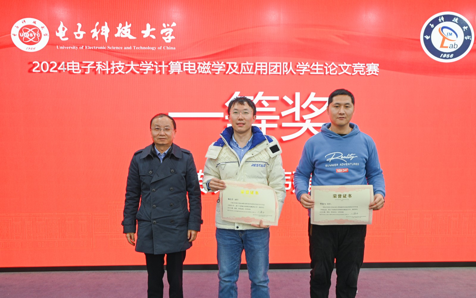 2024年12月16日,电子科技大学计算电磁学及其应用团队2024年学术年会在电子科技大学清水河校区物理学院567学术报告厅举办。团队老师、部分校友和近百名学生参加了本次学术年会。在下午的学生论文竞赛中,课题组韩建飞同学表现优异,荣获论文竞赛一等奖。学生论文竞赛全场共选出一等奖2名、二等奖3名、三等奖5名。