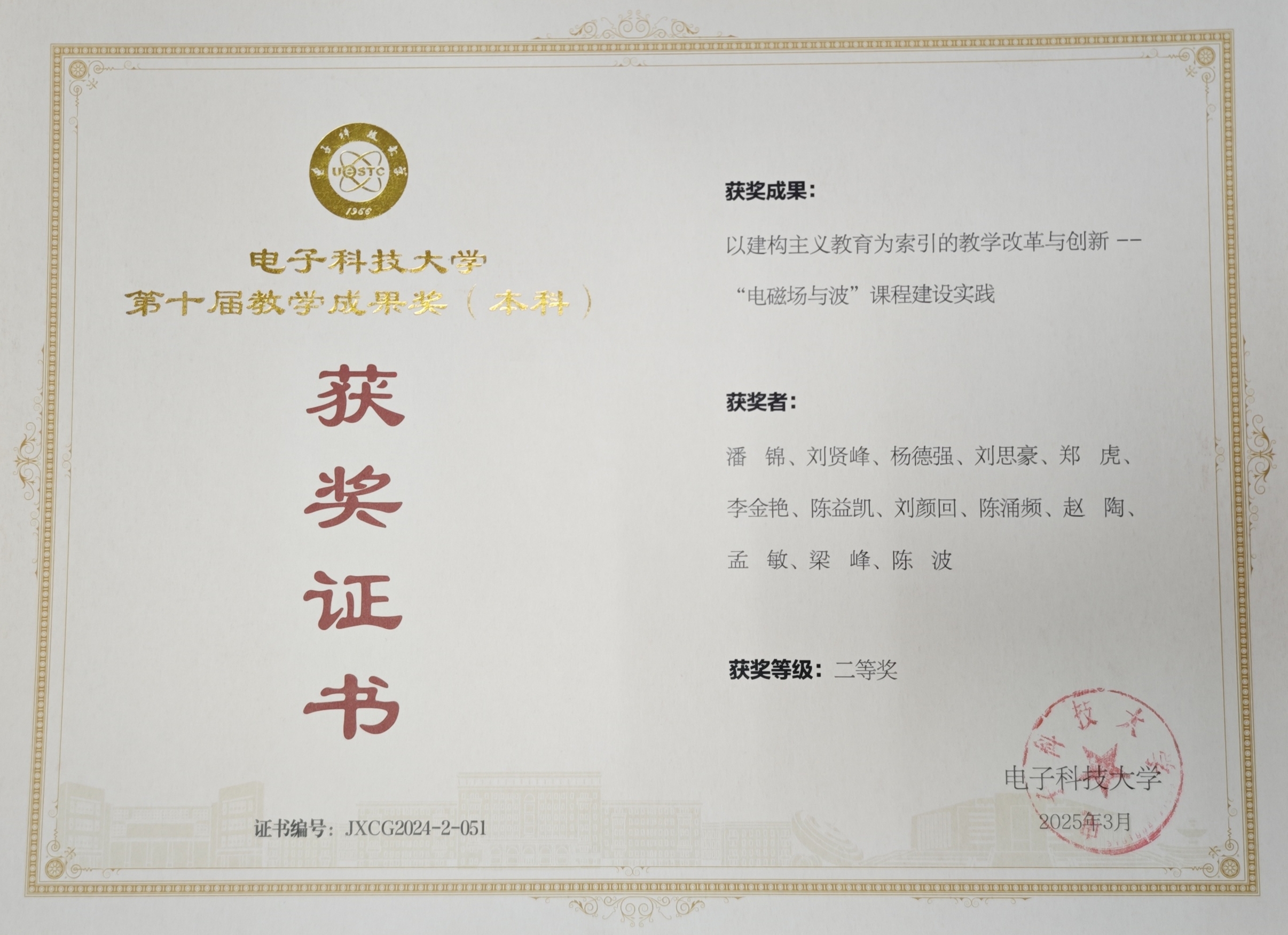 电子科技大学第十届教学成果奖二等奖(排名12)