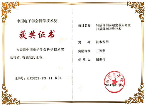 Title of Achievement:轻质低剖面超宽带大角度扫描阵列天线技术
