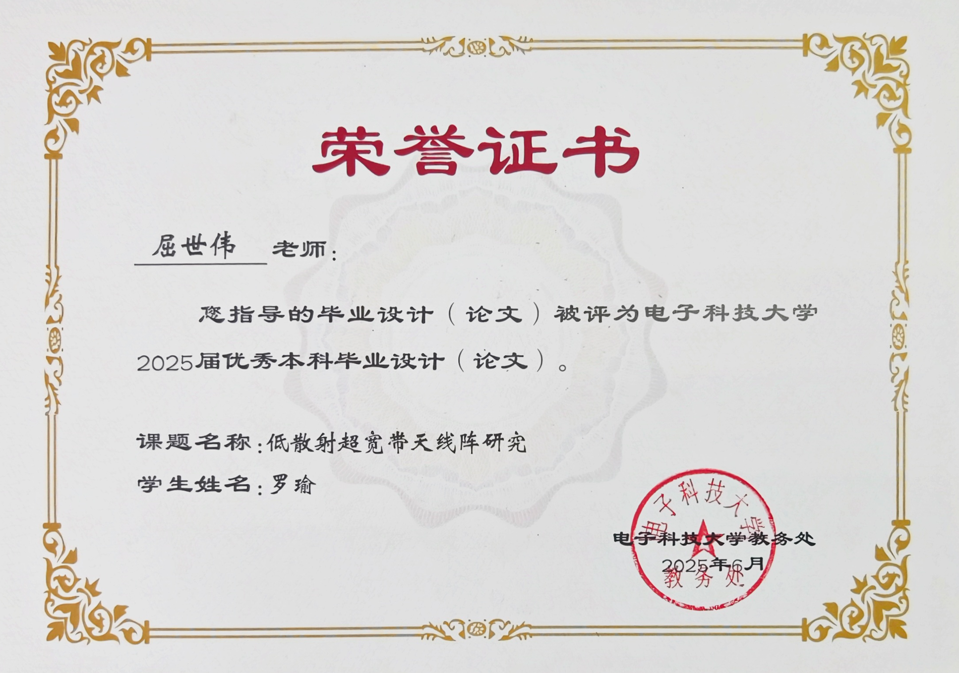 在本实验室完成本科毕业设计的2021级罗瑜同学,在2025年6月的本科毕业论文答辩中取得优秀成绩,并获得“电子科技大学2025届优秀本科毕业论文”荣誉。