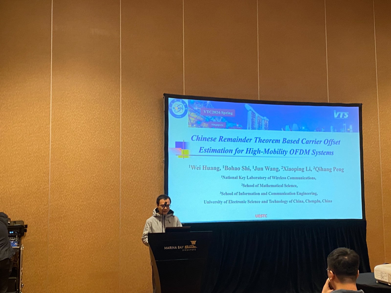 项目组黄巍同学24-27号参加在新加坡举办的The 2024 IEEE 99th Vehicular Technology Conference。