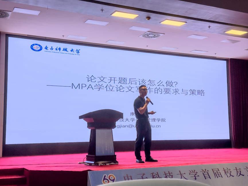 2025年9月20日晚,电子科技大学公共管理学院在沙河校区一教204学术报告厅举办了一场题为《论文开题后该怎么做?——MPA学位论文写作的要求与策略》的专题讲座。本次讲座由康健老师主讲,吸引了2024级与2025级众多MPA学生积极参与。