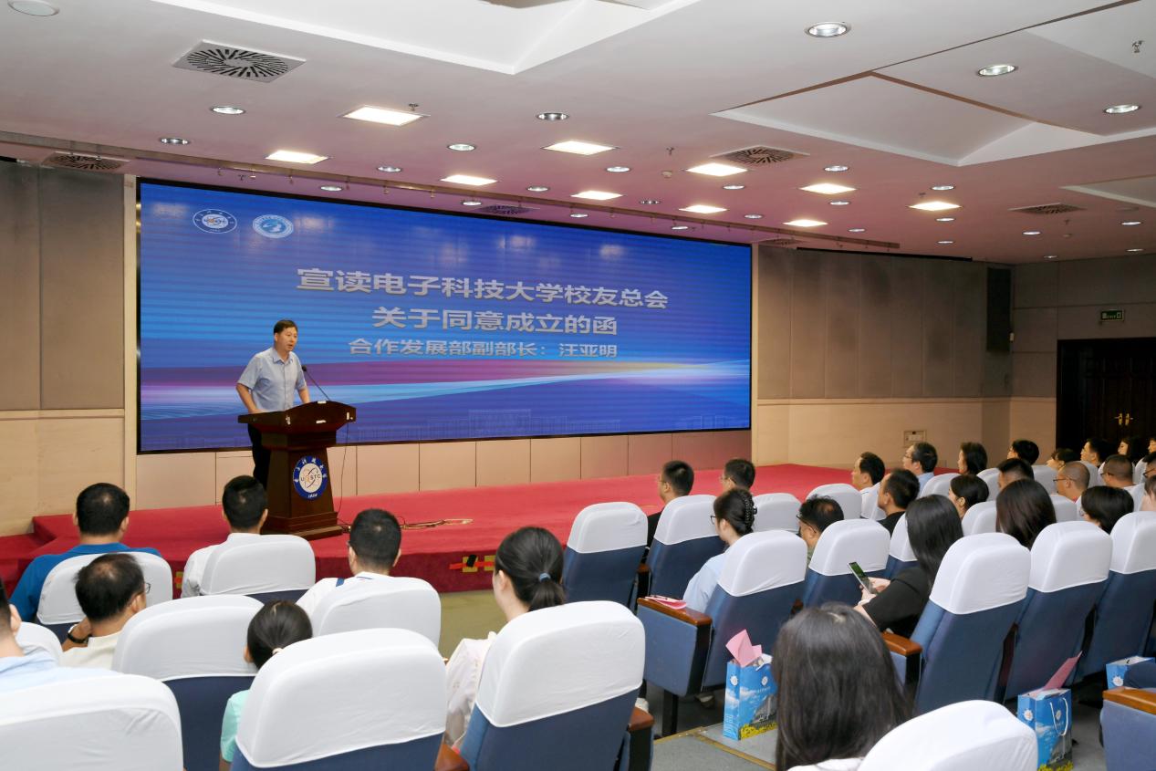校合作发展部副部长汪亚明宣读了《电子科技大学校友总会关于同意成立电子科技大学MPA校友会的函》。随后,他向大家介绍了校友总会的发展情况,并欢迎大家加入成电校友会大家庭。
