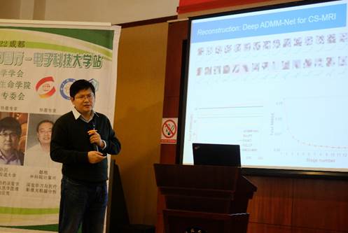 来自西安交通大学数学与统计学院信息科学系的孙剑教授做了题目为“模型驱动的深度学习方法在医学图像分析中的应用”的报告。报告指出,经典的深度学习方法将标准深度神经网络作为黑箱进行数据驱动的目标任务学习,造成模型及结果的可解释性比较差。为此,孙剑教授课题组提出了模型驱动的深度学习思想,将传统基于领域知识和物理机制的"建模方法"与基于数据驱动的"深度学习方法"相结合,构建模型驱动的深度学习方法。在报告中,孙剑教授介绍了在模型驱动深度学习方法上的一些研究成果及在医疗影像分析方面的应用。