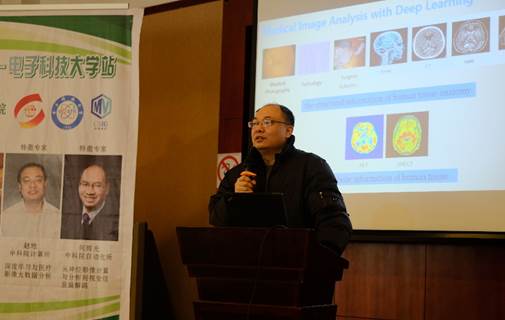 2018年12月22日,“CSIG图像图形中国行”来到了成都,本次活动由中国图象图形学学会(CSIG)主办,电子科技大学生命科学与技术学院、神经信息教育部重点实验室承办。担任执行主席并主持会议。本次活动的主题是“医学图像处理及应用”,邀请了来自电子科技大学的李纯明教授、西安交通大学的孙剑教授、中科院计算所的赵地副研究员和中国科学院自动化研究所的何晖光研究员等4位专家作报告。本次会议吸引了100余名来自不同高校、研究所及企业的师生及研究人员前来参会。