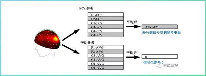 什么是脑电全脑信号?一个直观的操作就是把所有电极的信号进行平均。但由于脑电的测量离不开参考电极,通过所有原始信号的平均,获得的脑电全脑信号将很大程度上依赖于参考电极(见图1)。因为没有办法找到一个中性电位点作为参考点,所以从头皮脑电图中获得全脑信号几乎是不可能的。