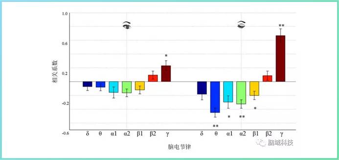 图2. 脑电各节律的能量和功能磁共振全脑信号的相关性