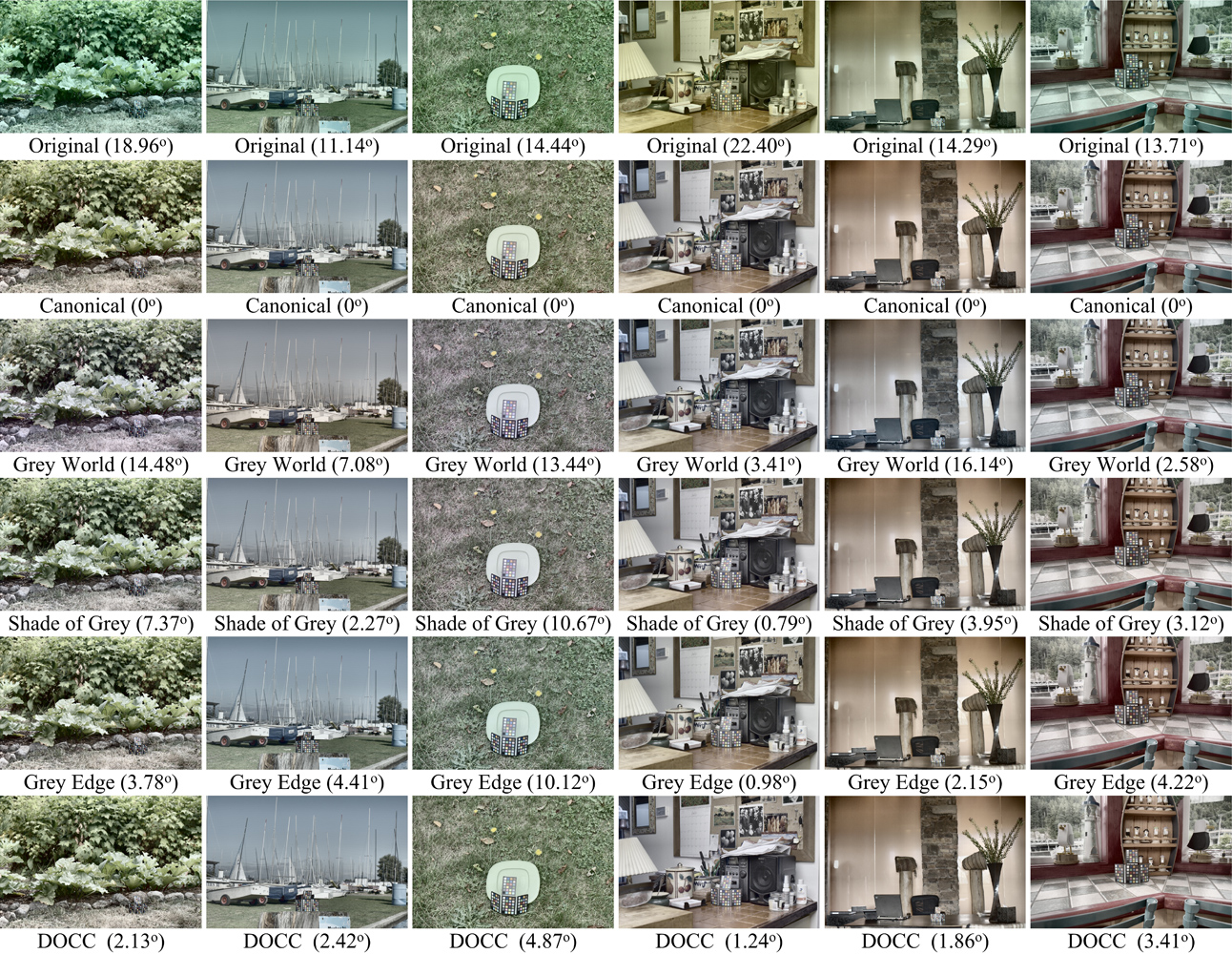 DOCC code:Codes Downloadwe experimentally evaluated our DOCC algorithm onColor Checker, SFUlab and SFU HDRdatasets by setting parameter k=0.1:0.1:1.0 and sigma=0.5:0.5:8.0, respectively. The real illuminant and results of proposed methods are avilable: Color Checker (Gehler-Shi) datasetSFUlab datasetSFU HDR datasetReference: