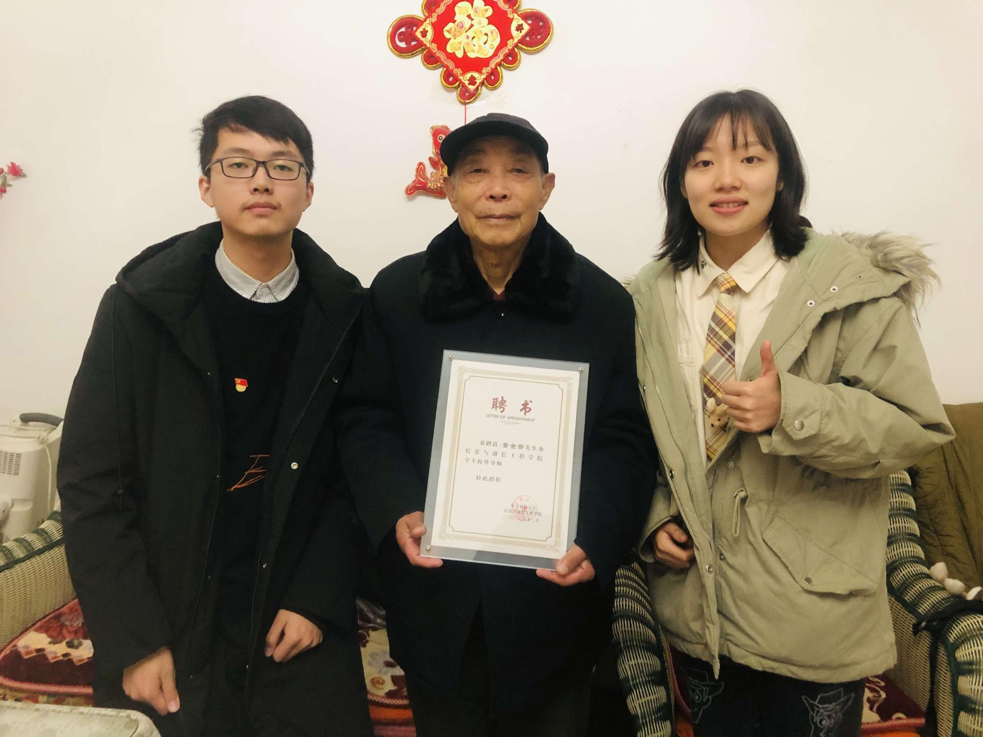 12月4日,党支部党员代表还前往抗美援朝老兵董金普爷爷的家里,老爷爷向青年党员讲述了他参加志愿军抗战的故事,鼓励同学们在新的时代要树立远大志向,永远跟党走,走好新时代陈长征路。
