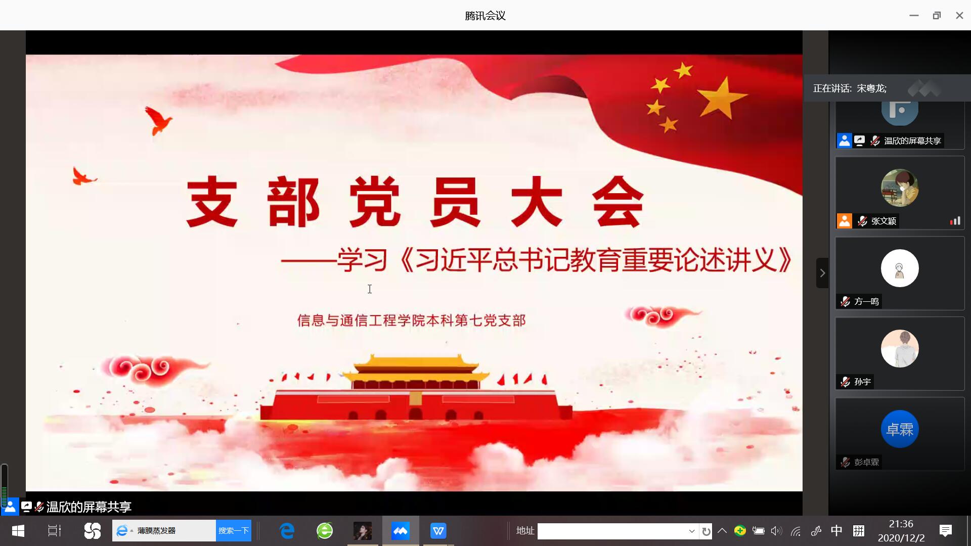 为深入学习贯彻落实习近平总书记关于教育的重要论述,学院本科第五和第七党支部组织了专题学习教育活动。学习以线上线下,小组研学和自主学习形式进行。在线下,个人自主学习、以党小组为单位交流学习、以党支部为单位开展支部大会分享学习心得等多种学习方式围绕《讲义》展开了学习交流。 在线上,支部党员们每天轮流在支部QQ群内发布来自学习强国、人民日报、习近平总书记系列讲话等相关学习资料,并在群内形成了良好的学习氛围,大家在探讨中不断学习、共同进步。