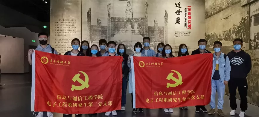 为庆祝建党一百周年,深入学习习近平新时代中国特色社会主义思想,结合地域特色、回顾党的光辉历程,着眼学生身份、弘扬党的优良传统,激励研究生党员不忘初心、牢记使命,2021年4月17日,电子工程系研究生第二、四党支部联合数学科学学院研究生第三党支部于成都市博物馆开展“忆百年峥嵘党史,与伟大信仰对话”主题党日活动。