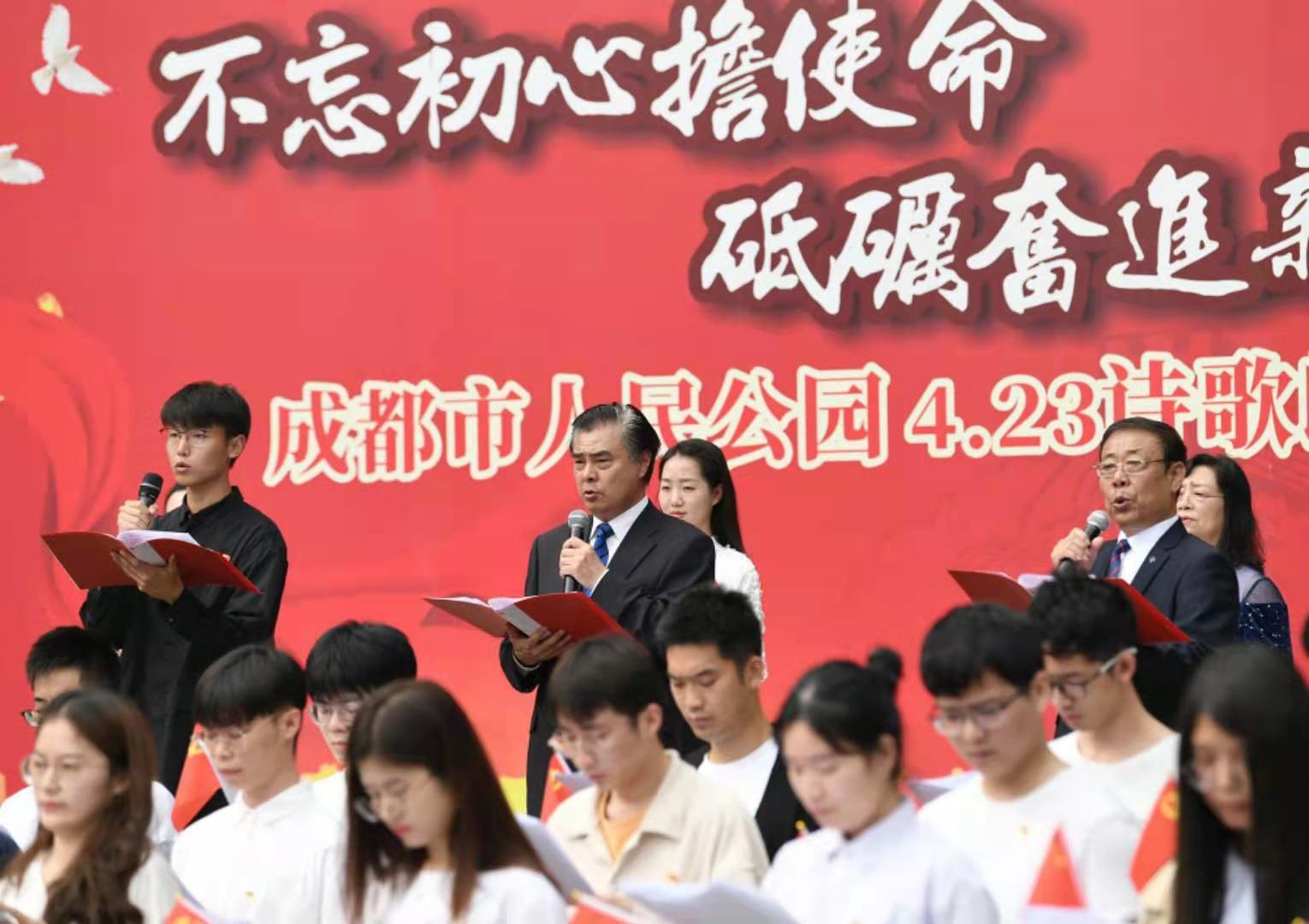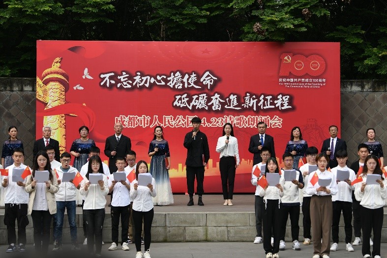 诗诵红色经典,承扬百年华章。为纪念中国共产党成立100周年,同时迎接第26个世界读书日,4月23日,信息与通信党委联合成都市人民公园党支部举办了以“不忘初心担使命,砥砺奋进新征程”为主题的诗歌朗诵会,活动地点为人民公园保路纪念广场。信息与通信工程学院研究生党建委员会、研究生会、通信工程系研究生第一、二、三、四党支部及抗干扰研究生第二党支部参与了本次活动。