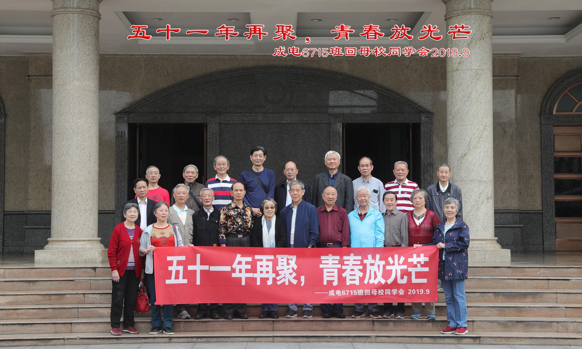 在国庆70周年暨建校63周年即将来临之际,信息与通信工程学院6715班校友带着对学校的深厚感情从大江南北回到母校,共叙51载同窗离别的岁月情怀,追忆同窗往事,畅想人生感悟,再续成电情缘。