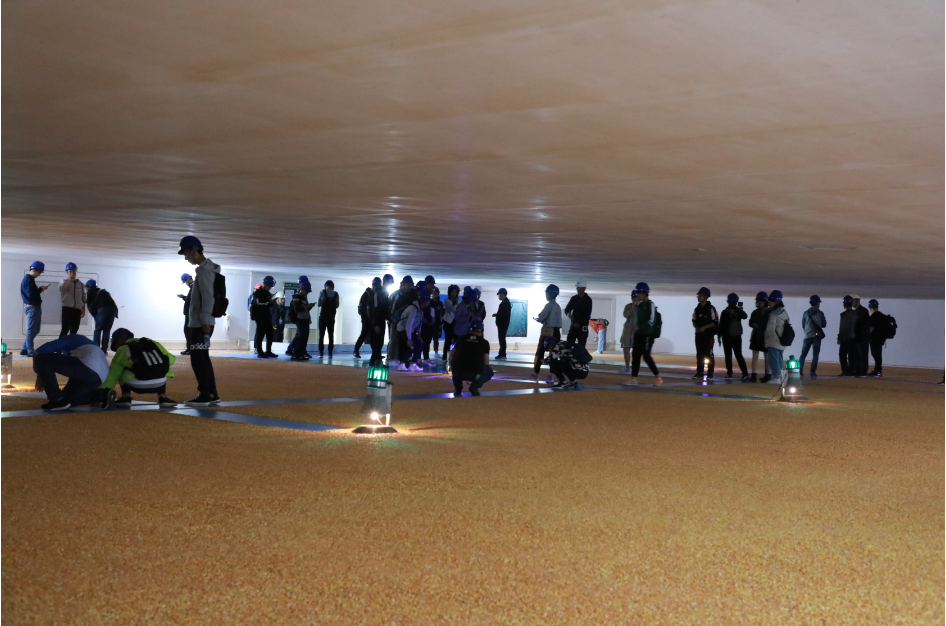 周冰和中储粮业务骨干带领营员们参观了玉米存储仓间,详细介绍了储粮科学技术应用、粮食储藏过程中面临的困难以及现代技术发展下的应对措施。他还结合当下国内外形势深入分析了我国当前的粮食安全,让同学们对粮食仓储有了更深的认识,让大家深入了解了大国粮仓工作人员的不易。