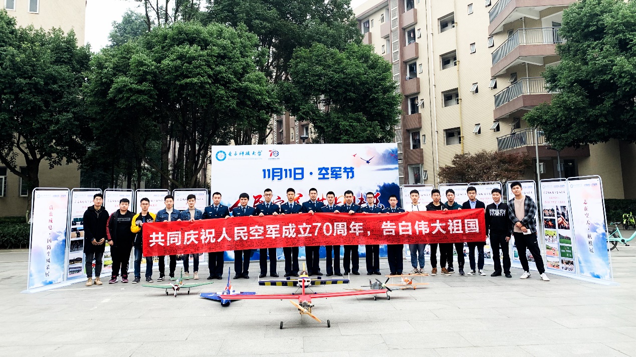 11月11日中午,在银桦食堂广场, 成电国防生开展了“蔚蓝成电·国防生风采展”、“告白空军·祝福签名活动”、“志在空天·航模展”系列活动,表达了成电学子对人民空军和伟大祖国的美好祝福。