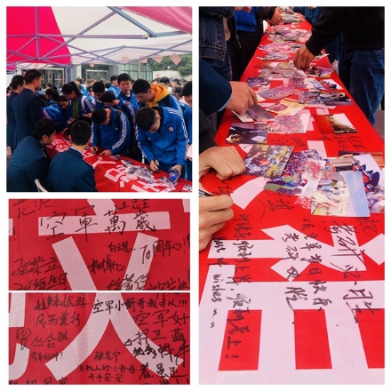 人民空军历经艰辛走过了70年风雨历程,从开国大典上那仅有的17架飞机,到现在“空天一体,攻防兼备”的战略空军,这是一代代空军人用青春、热血和生命书写的强军战歌。活动现场,成电学子积极参与,纷纷在横幅上签下自己的名字,写上对人民空军的祝福,一张张笑脸见证了成电学子对祖国的热爱,一句句发自肺腑的留言抒发了成电学子对人民空军的祝福。