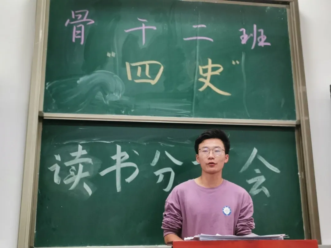 各班还在班主任老师的带领下组织了“学四史、守初心、担使命”读书分享会。大家通过自主阅读《新中国70年》《历史的轨迹》、《之江新语》、《平语近人》等书籍,以小组形式就“四史”相关书籍阅读的收获进行了交流,以纪录片片段、小视频分享、读书笔记分享等形式深入交流了学习体会。