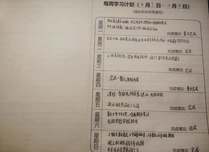 在“学涯同舟”活动中,我们一起根据实际情况制订了每日的学习方案与目标,以周为单位进行学习效果的检验,并依据实际成效对接下来的学习任务进行调整。在日常中,周梦同学与我一同学习,辅助我改进学习方法,解答我在学习过程中遇到的问题。这种朋辈式,陪伴式的学习方式使学习过程变得高效而轻松。