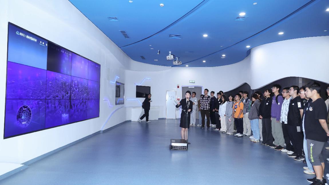 活动伊始,师生们在企业讲解员的引导下参观了腾讯公司展厅。讲解员从腾讯集团波澜壮阔的发展史诗开始介绍,逐步深入到“互联网+”与现代城市治理融合的前沿实践,还介绍了腾讯在成都的本土化发展历程,同学们通过了解腾讯大厦的功能布局,切身感受了顶尖科技企业的工作氛围与创新环境。展厅内部,AI技术在文旅宣传与文物保护领域的创新应用案例通过生动的交互演示呈现在大家面前,让同学们对AI技术的落地价值与广阔前景有了直观而立体的认识。