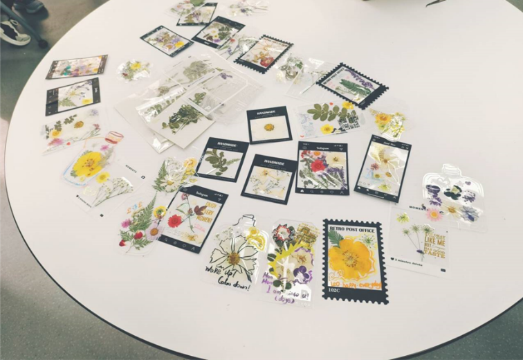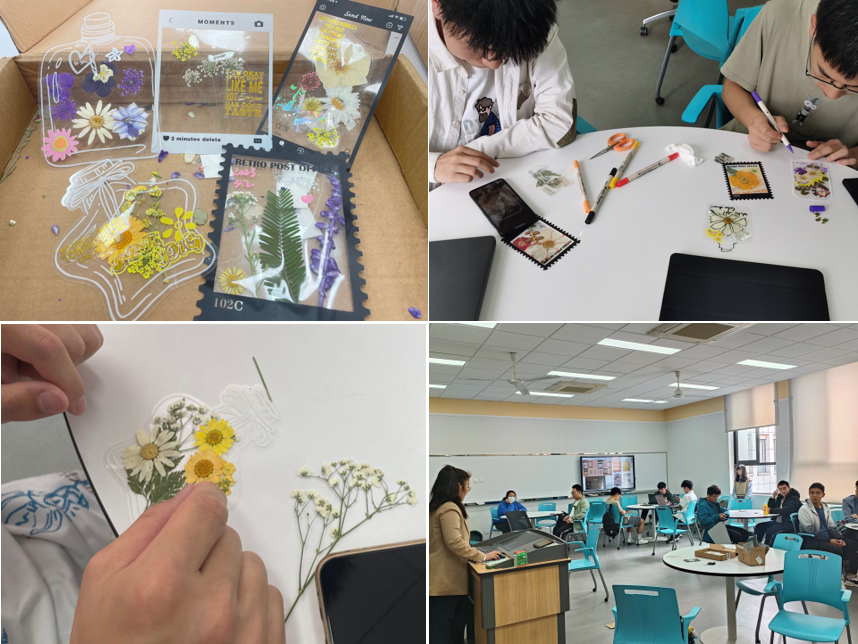 在动手环节,同学们用干花、树叶和相框等素材制作精美书签;在展示环节,同学们相互交流彼此的创作理念和制作心得;在分享环节,一摆、一贴、一画在色彩和搭配中呈现出自己对“美”的独特想象力。