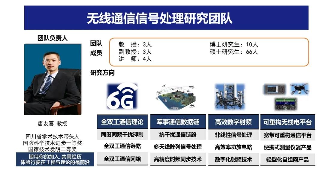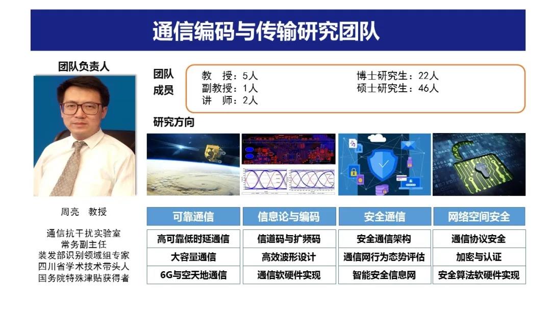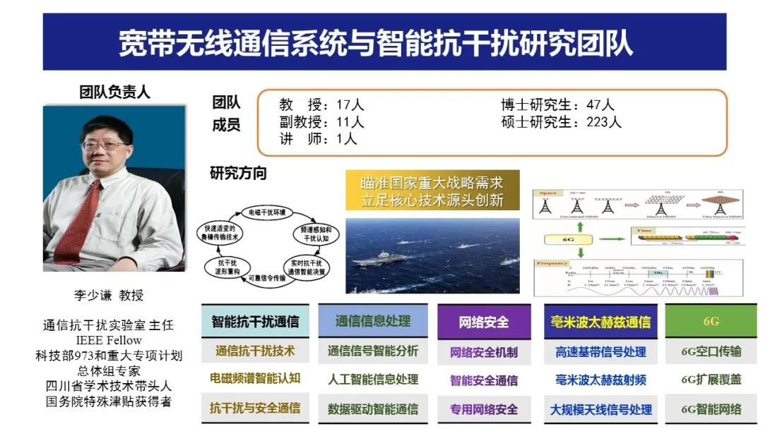 实验室的研究课题涉及内容包括但不限于:5G/6G以及未来移动通信;60G赫兹与太赫兹等新频段通信;多波段自适应扩跳频通信;综合与智能抗干扰通信;隐匿与抗截获通信;中继与协同通信;自组织网与无线专用网;传感器网与物联网;卫星通信组网;认知无线电与智能认知网;信道编码与调制的联合优化;非协作通信信号处理;无线定位;密码与身份认证及其应用;赛博目标识别与赛博安全;片上信息处理系统;专用通信芯片等。