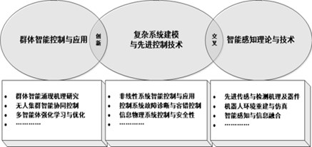 团队主要从事复杂系统管理与先进控制基础研究、群体智能控制基础研究和智能感知理论与技术基础研究三个方向的研究工作,图1为研究方向示意图。